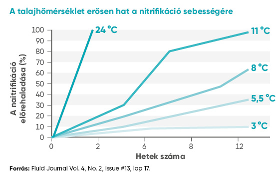 A kijuttatott karbamid és ammónium nitrogén kezelés nélkül a talaj hőmérséklete és nedvességtartalma függvényében néhány hét alatt teljesen átalakulhat nitráttá a nitrifkáció folyamatában. A nitrifikáció sebessége szorosan összefügg a folyamatot végző mikroszervezetek környezeti igényével, a nedves talaj hőmérsékletének emelkedése jelentősen gyorsítja a folyamatot.