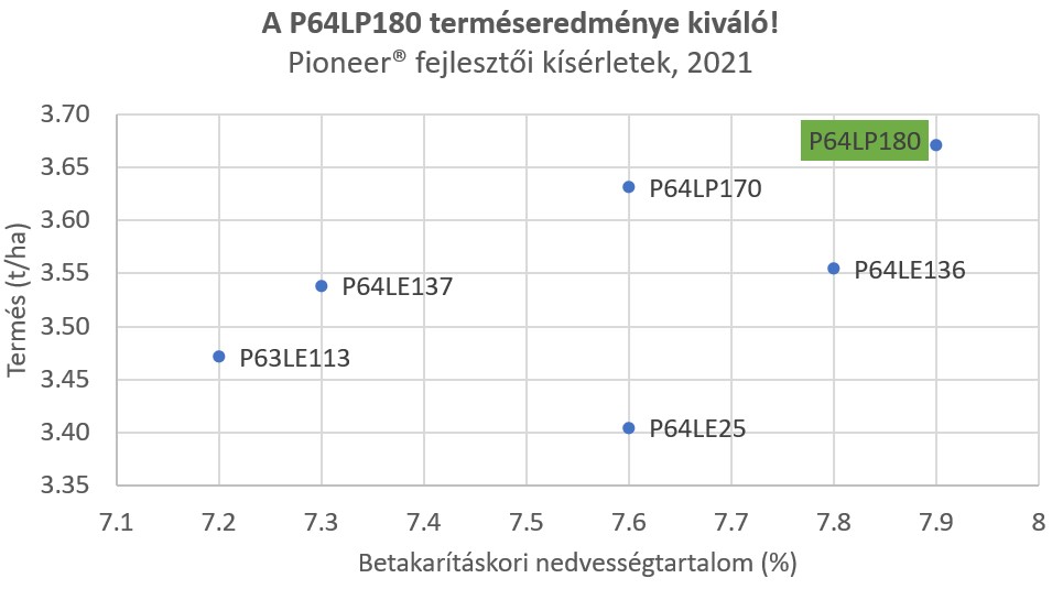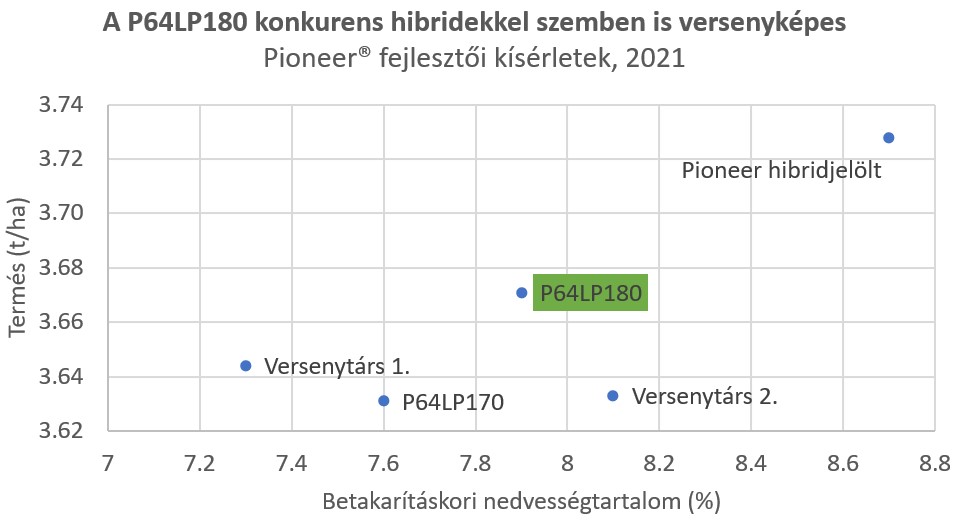 - Hiába a számos pozitív agronómiai jellemző, ha nem párosul melléjük megfelelő termőképesség. A P64LP180 ezen a téren is megnyugtatóan teljesít.