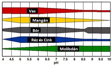 2. ábra: A mikorelemek relatív elérhetősége a talaj pH-ja szerint