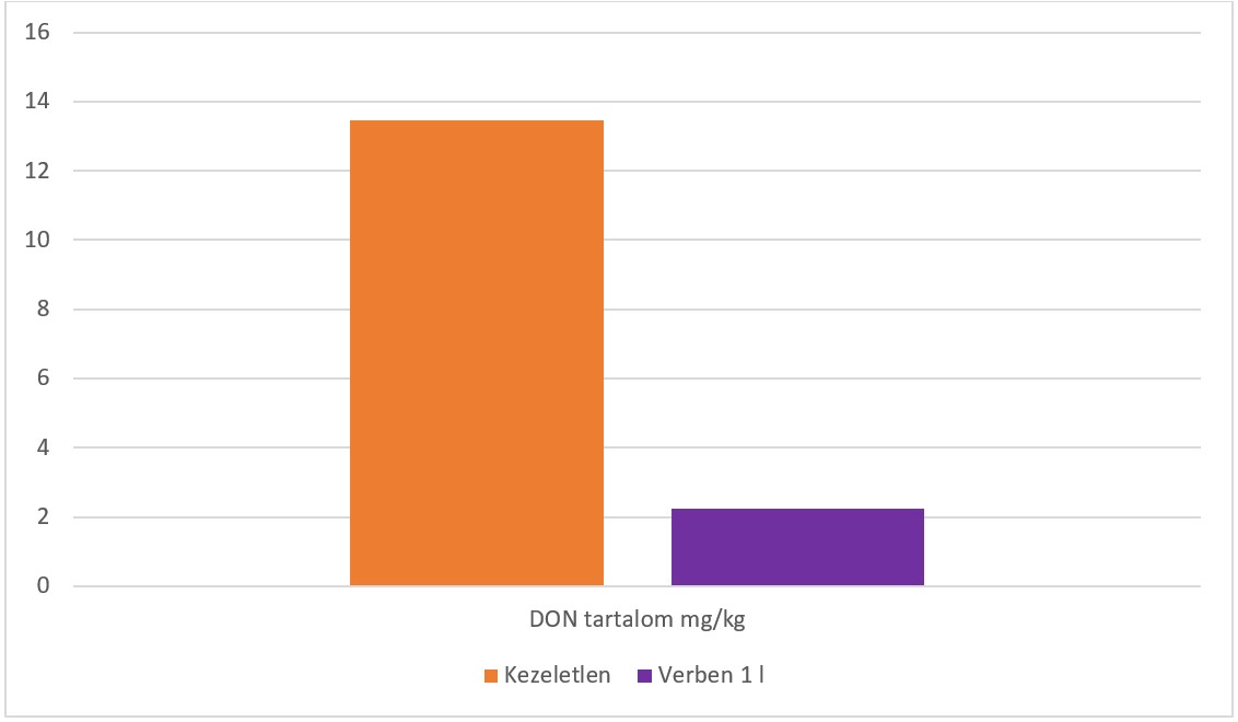 A közvetlen fertőzéscsökkentő hatás természetesen kiegészül a DON toxin mennyiségének erős csökkentésével, ami a következő ábrán jól látható.