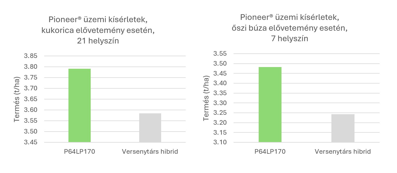A Clearfield® Plus gyomirtási technológiában alkalmazható linolsavas P64LP170 hibridünk az elmúlt években számos alkalommal bizonyította, hogy jól érzi magát a hazai időjárási feltételek mellett. A vetést követő időszakban gyorsan fejlődő állománya jó alapot ad a teljes vegetációs időszakra. A különböző elővetemények sem befolyásolják jelentősen az elérhető termést.