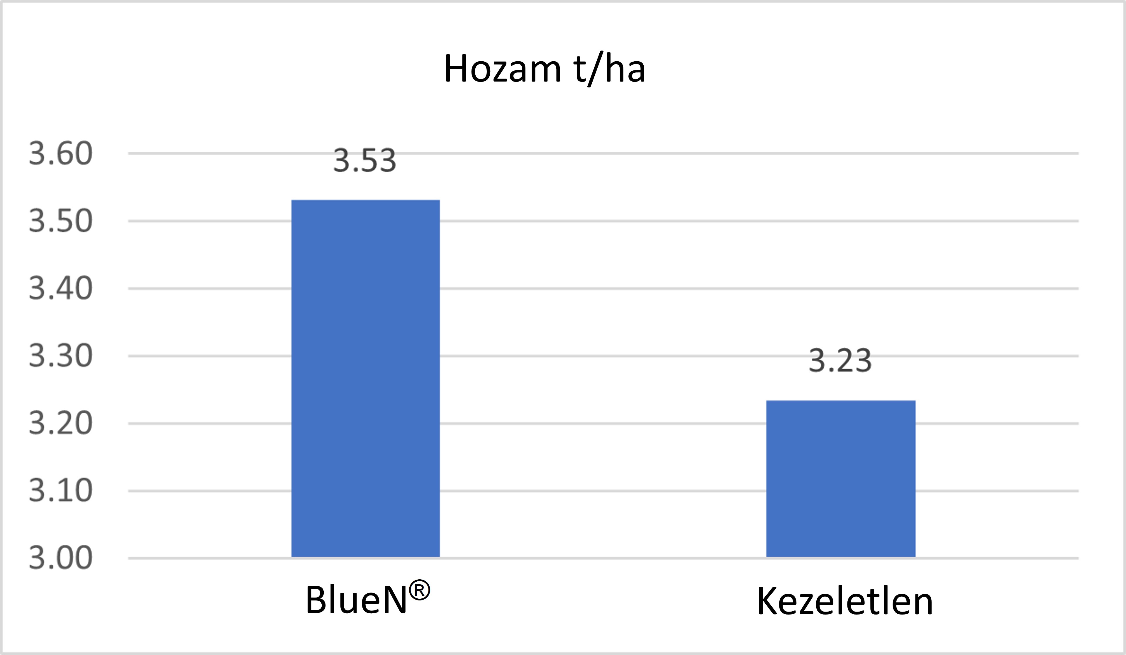 A Corteva BlueN® mikrobiológiai készítménye, amelyet Magyarországon tavaly ősszel engedélyeztek, a Methylobacterium symbioticum SB23 szelektált törzsét tartalmazza, amely képes a légköri nitrogén megkötésére. A kísérletben a kezelt növények fotoszintetikus aktivitása a SPAD (Soil Plant Analysis Development) index 3,7-es növekedését mutatta a kezeletlen parcellákhoz képest, ami pozitív hatást gyakorolt a növény növekedésére. A betakarított szemtermést tekintve a BlueN®-nel kezelt növények átlagosan 3530 kg/ha termést mutattak, ami 300 kg-mal több volt, mint a kezeletlen növényeknél.