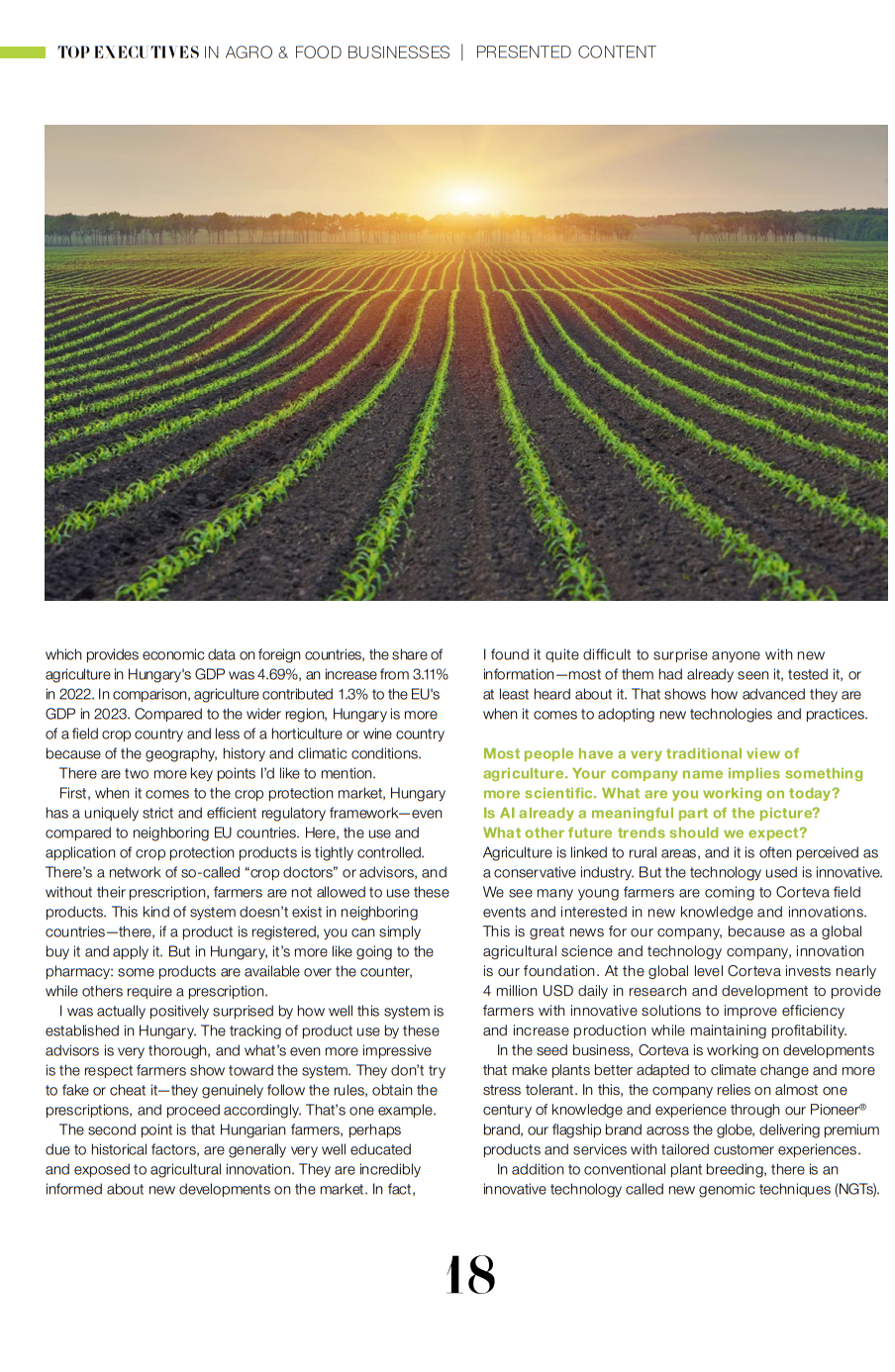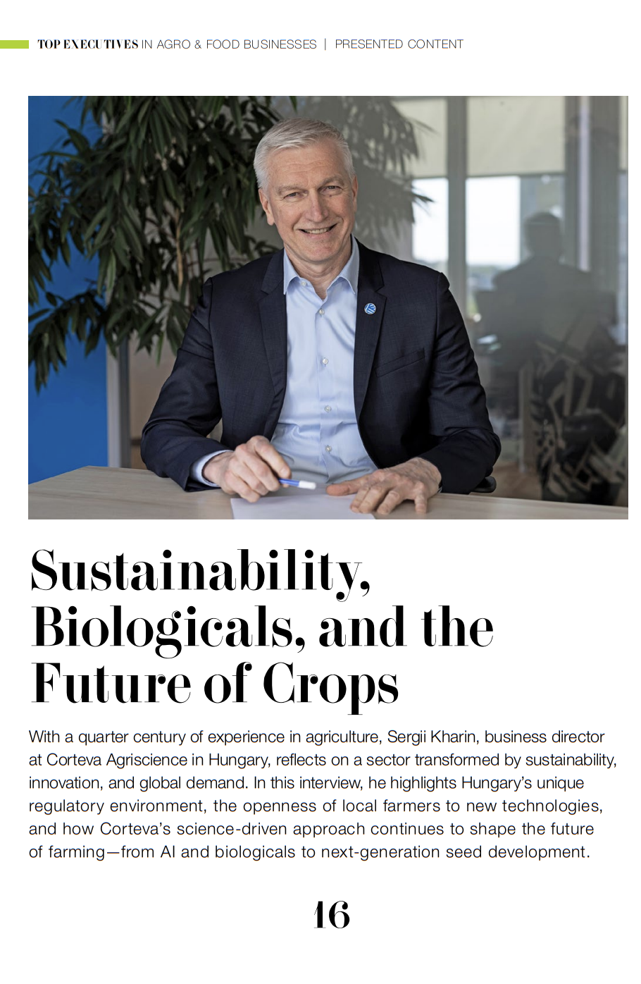 Sergii Kharin, a Corteva magyarországi ügyvezető igazgatója interjút adott a Budapest Business Journalnak. Az angol nyelvű interjú a Top Executive magazinban jelent meg, mely a legbefolyásosabb magyarországi agrár- és élelmiszeripari vállalatvezetőket mutatja be.
