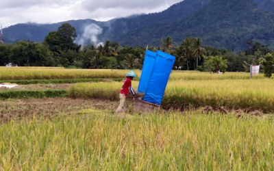 Sementara itu, tiga kabupaten/kota dengan potensi produksi padi terendah adalah Kabupaten Kepulauan Mentawai, Kota Bukittinggi, dan Kota Padang panjang
