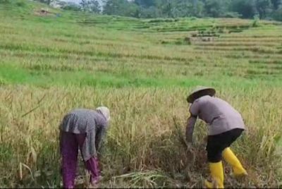Kapolsek IPTU Sukendri melalui Bahan informasi Ikeu Devi A, Dalam kunjungan tersebut Bhabinkamtibmas Ikeu Devi A, memberikan himbauan kepada pemilik sawah untuk terus meningkatkan hasil panennya sebagai contoh dalam meningkatkan perekonomian rakyat untuk menciptakan swasembada pangan.