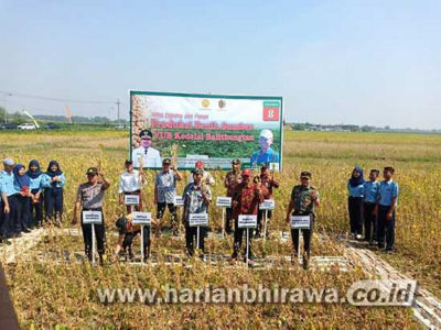 Yang panen perdananya dilakukan balit bangtan Kementan RI.yang dikemas dalam Temu Lapang & Panen Benih Sumber Varietas Unggul Baru (VUB) Kedelai yang berlangsung di area persawahan Dusun Seno Desa Sidomulyo Kecamatan Bangsal Kabupaten Mojokerto, Jum’at (08/11).