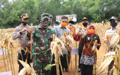 Klikwarta.com, Bintan - Komando Distrik Militer (Kodim) 0315/Bintan bersama Pemko Tanjungpinang dan Unsur FKPD Tanjungpinang menggelar panen perdana demplot (percontohan) budidaya jagung dalam rangka menjaga ketahanan pangan di Makodim 0315/Bintan Km 5 Atas Kota Tanjungpinang, Kamis (06/8/2020).