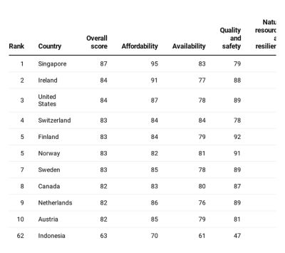 Indonesia should probably take a note or two from its closest neighbor Singapore. With a much smaller size and almost no natural resources of its own, Singapore has consistently ranked well on the food security index.