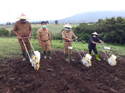 Olly menambahkan kini pemerintah tetap berupaya menangani wabah Covid-19. Namun pemerintah juga terus melakukan upaya penguatan ekonomi kerakyatan sesuai arahan Presiden RI, Joko Widodo sehingga dalam penanaman ini menyerahkan bantuan benih pertanian dan bantuan pupuk jagung kepada petani Tomohon.