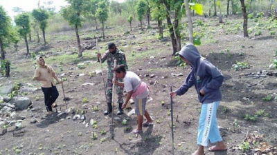 Petani di Dusun Dilagusun, Desa Lamaksenulu, Juliana Mau mulai menanam jagung, Selasa (03/11/2020). Penanaman jagung di kebun Juliana ini dibantu personel Pos Delomil.