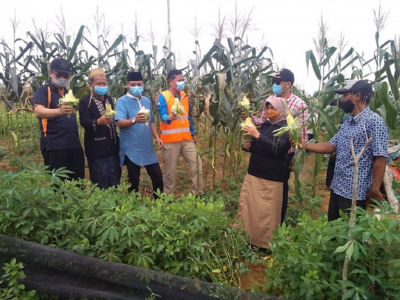 Walikota Tanjungpinang Hj Rahma S,ip didampingi Sekda Kota Tanjungpinang, Kadis PU, Camat Tanjungpinang Timur, Lurah Batu IX, Pengasuh Ponpes Al Kautsar KH Supeno serta tokoh masyarakat bersama-sama memetik jagung yang siap panen.