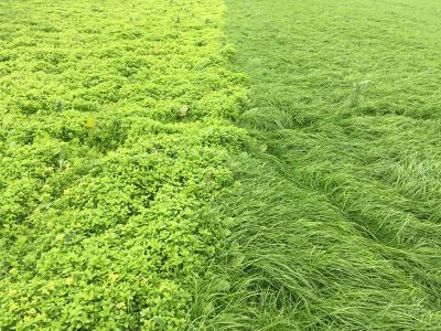 Grass field treated with Envy (right) V non-treated side covered in chickweed.