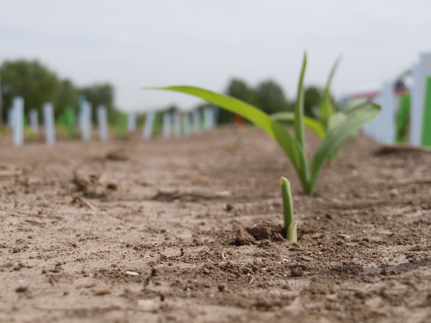 | Figura 5: piante di mais appena emerse in uno studio di campo condotto da Pioneer, che confronta i tempi di emergenza in una rotazione mais-soia con quelli di una monosuccessione su mais. |