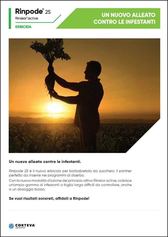 Rinpode® 25 è il nuovo erbicida sistemico per la barbabietola da zucchero, specifico per il controllo in post-emergenza delle foglie larghe come cencio molle, farinello, visnaga, stramonio e altre dicotiledoni (anche resistenti).