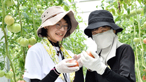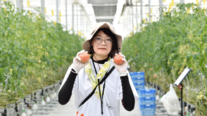 私が担当するトマトハウスの現在の栽培品種は、ピンク系大玉トマトの「富丸ムーチョ」。日本品種と海外品種のハーフで、棚持ちがよく食味も優れているなど両方の良いところを合わせ持っています。栽培にあたり特に気を配っているのは、やはり品質の安定です。大きさが揃ったおいしいトマトを消費者の皆さんにお届けできるよう、日々、スタッフ一丸となって努力しています。