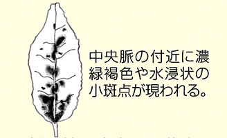 感染期の晩秋(10月中〜下旬)と早春(2月下旬〜3月上旬)に薬剤防除。※発生の多い古葉の裏面に薬剤がよくかかるよう散布