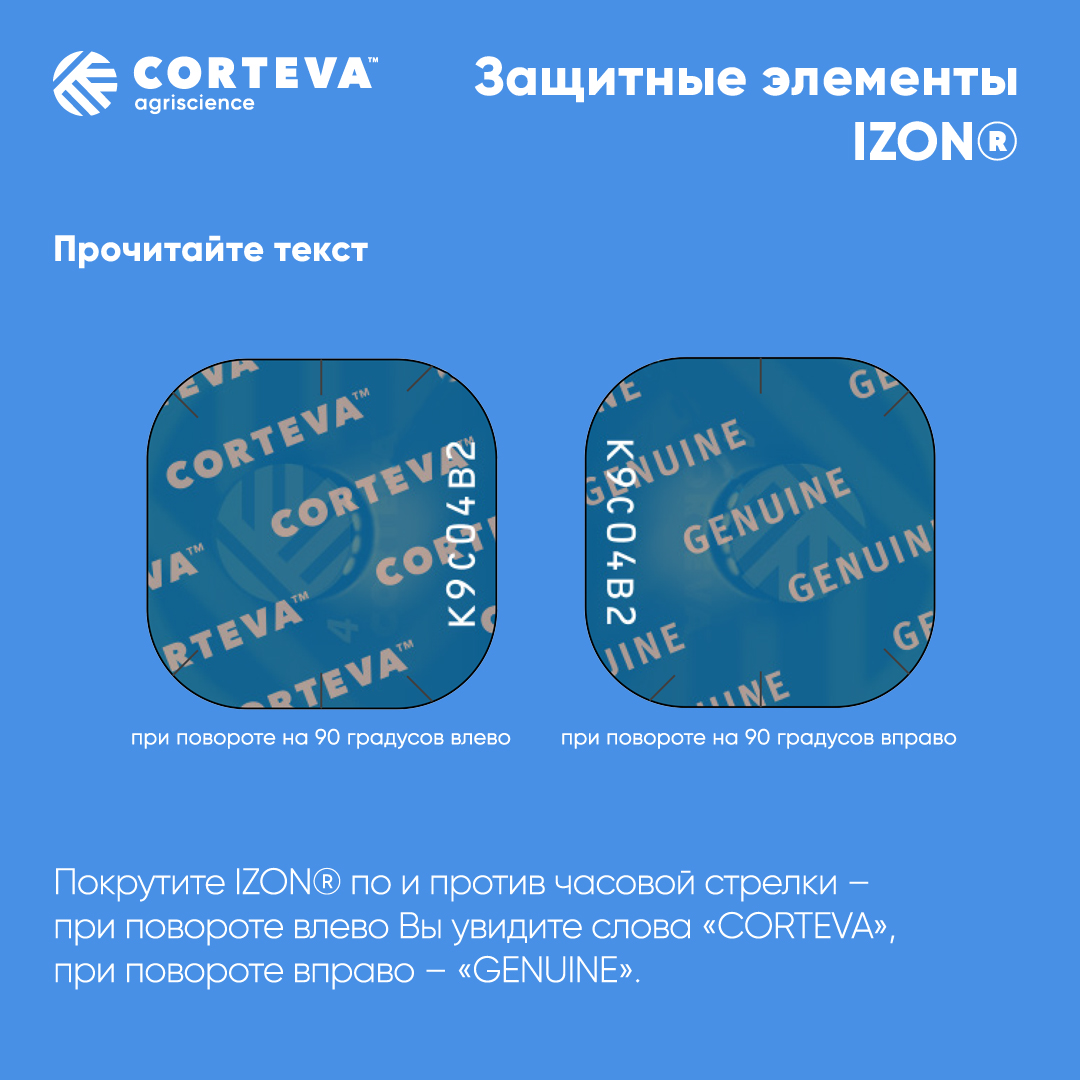 Если у вас возникли сомнения или вопросы по подлинности продукта, обратитесь к представителю Corteva в вашем регионе
