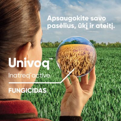 Ką rodo bandymų rezultatai? Tarptautinis „Eurowheat“ projektas, per kurį tiriami javų fungicidai Europos šalyse, jau trečius metus iš eilės nustatė, kad Univoq veiklioji medžiaga Inatreq active yra pati efektyviausia. Vidutinis derliaus priedas skirtingose šalyse skirtingais metais svyruoja 1,62–1,7 t/ha. Lietuvoje taip pat atliekama daug mokslinių bandymų. Jų rezultatai labai panašūs į anksčiau minėtus atliktus užsienyje – Univoq vienas geriausių produktų rinkoje. Be to, suskaičiavus ekonominę naudą (derliaus priedas x derliaus kaina – išlaidos fungicidui), Univoq gerokai lenkia kitus rikoje esančius fungicidus. Todėl renkantis fungicidą visuomet būtina įvertinti ne tik jo kainą, bet ir duodamą naudą, galutinį rezultatą.