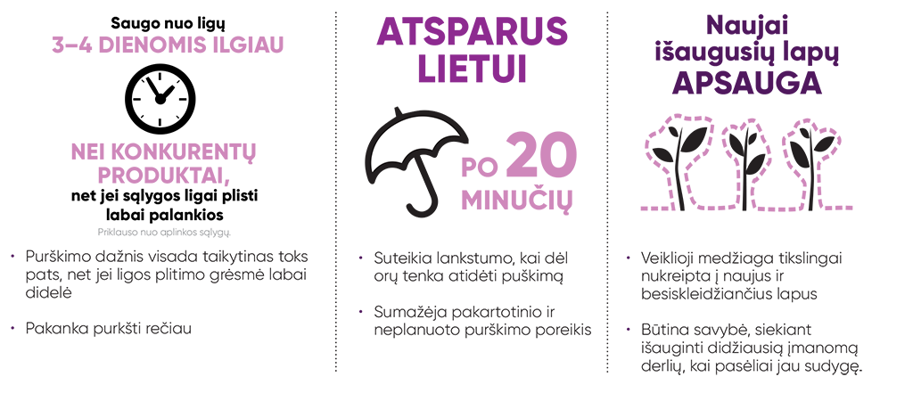 Dėl dvigubo veikimo prieš ligų sukelėjus Zorvec Entecta prisideda prie tvaresnio atsparumo valdymo ir užtikrina stiprią apsaugą visą vegetacijos laikotarpį