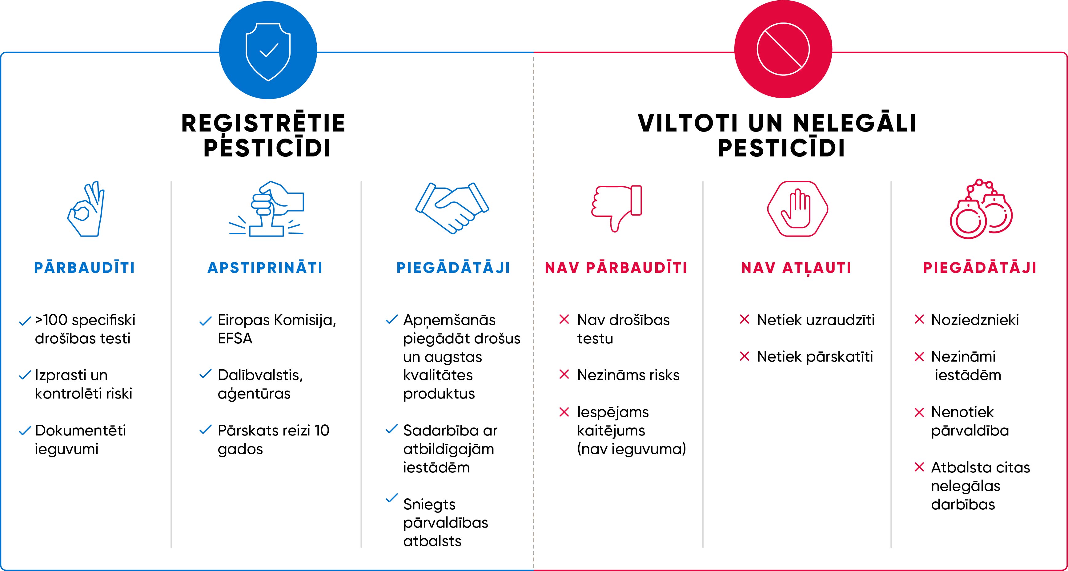 Tomēr tirgū nonāk aizvien lielāks skaits viltotu un nelegālu produktu. Šie nelegālie produkti apdraud ilgtspējīgu lauksaimniecību, kā arī rada nepieņemamu risku cilvēku un vides veselībai. Uzņēmumā Corteva ir globāla viltojumu apkarošanas stratēģija, lai aizsargātu mūsu klientus un zīmolus.