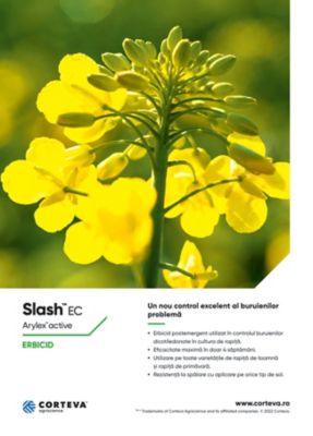 Pentru aplicarea în primăvară, compania Corteva Agriscience vă pune la dispoziție cea mai avansată soluție tehnologică pentru controlul buruienilor dicotiledonate – erbicidul SLASH™ EC, erbicidul nr. 1 pentru controlul din primăvară al buruienilor din cultura de rapiță.