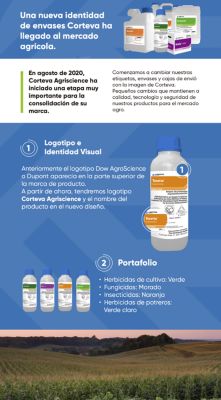 En este momento de transición podrás encontrar en circulación productos con la identidad anterior y la nueva identidad Corteva. En caso de dudas, favor de entrar en contacto con tu Representante de Ventas Corteva y/o Distribuidor Autorizado Corteva.