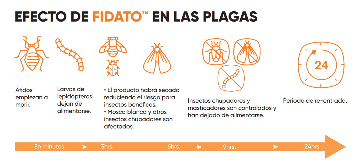 Insecticida, que controla un amplia variedad de plagas en diversos cultivos. Fidato™ es eficaz cuando es usado en las dosis recomendadas, tiene un bajo impacto sobre insectos benéficos y controlando masticadores y chupadores.