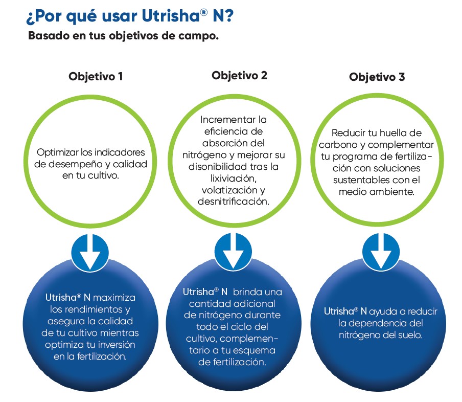 Utrisha® N El primer bioestimulante optimizador de nitrógeno de máxima eficacia. Desarrollado para el aporte de fertilización nitrogenada biológica, contribuyendo a una agricultura más rentable y sostenible.