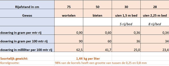 Zie bovenstaand plaatje: Pas als het roze granulaat goed om het zaad & kiemplantje verdeeld wordt kan het een ‘beschermde zone’ vormen tegen aantasting van schadelijke insecten.