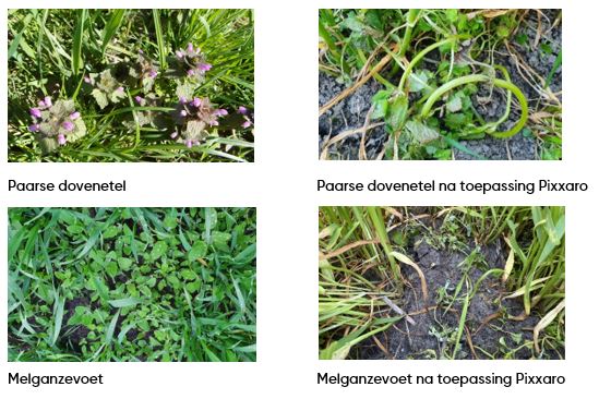 Normaal wordt Capri Twin of solo gespoten, of met Atlantis Star gecombineerd in wintergraan. Echter, de bestrijding door deze combinatie van paarse dovenetel, hoenderbeet en duivenkervel laat wel eens wat te wensen over. Pixxaro gecombineerd met Capri Twin (en Atlantis Star) zorgt wel voor een complete bestrijding inclusief deze onkruiden. Ook is Pixxaro in combinatie met Primus in te zetten in het voorjaar als correctie op een najaarsbespuiting met bodemherbiciden.