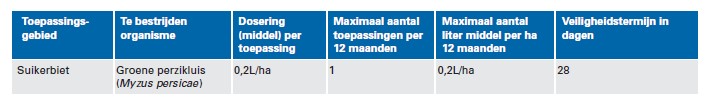 Toepassing in suikerbieten volgens het vrijstellingsbesluit: