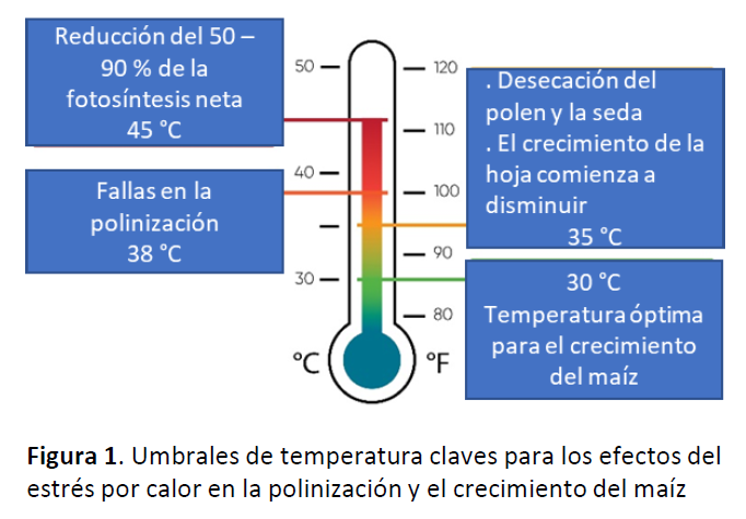 Las temperaturas altas pueden impactar directamente en el rendimiento, reduciendo la polinización y la fotosíntesis neta, pero de acuerdo con investigaciones de campo y modelos de simulación, el impacto más grande muy probablemente se da por la interacción del calor y el estrés hídrico.