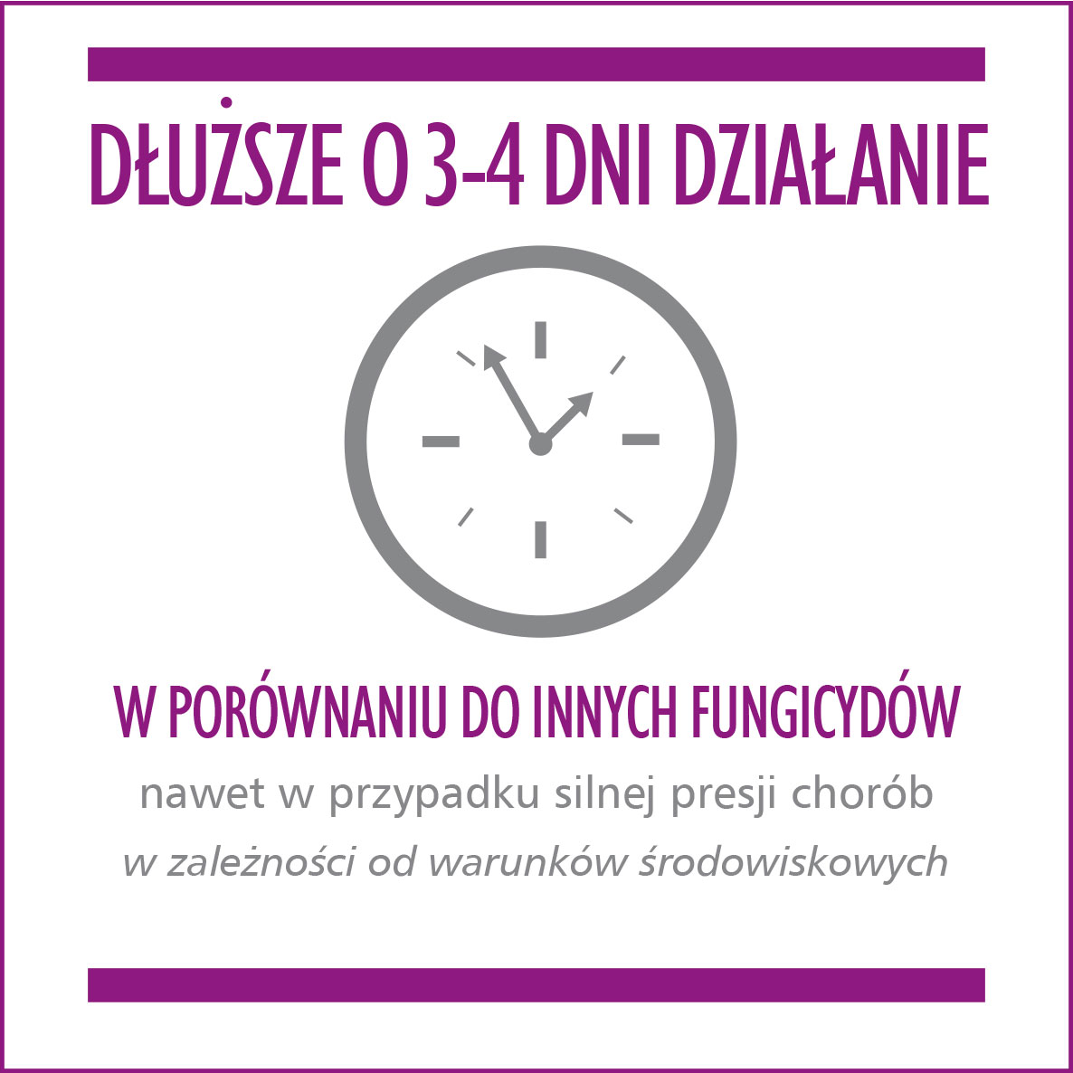 Pierwszy zabieg wykonać przed pojawieniem się pierwszych objawów choroby, następne zabiegi wykonywać np. co 10 dni (3-4 dni dłuższy odstęp niż przy stosowaniu do tej pory produktów konkurencyjnych o podobnym działaniu).