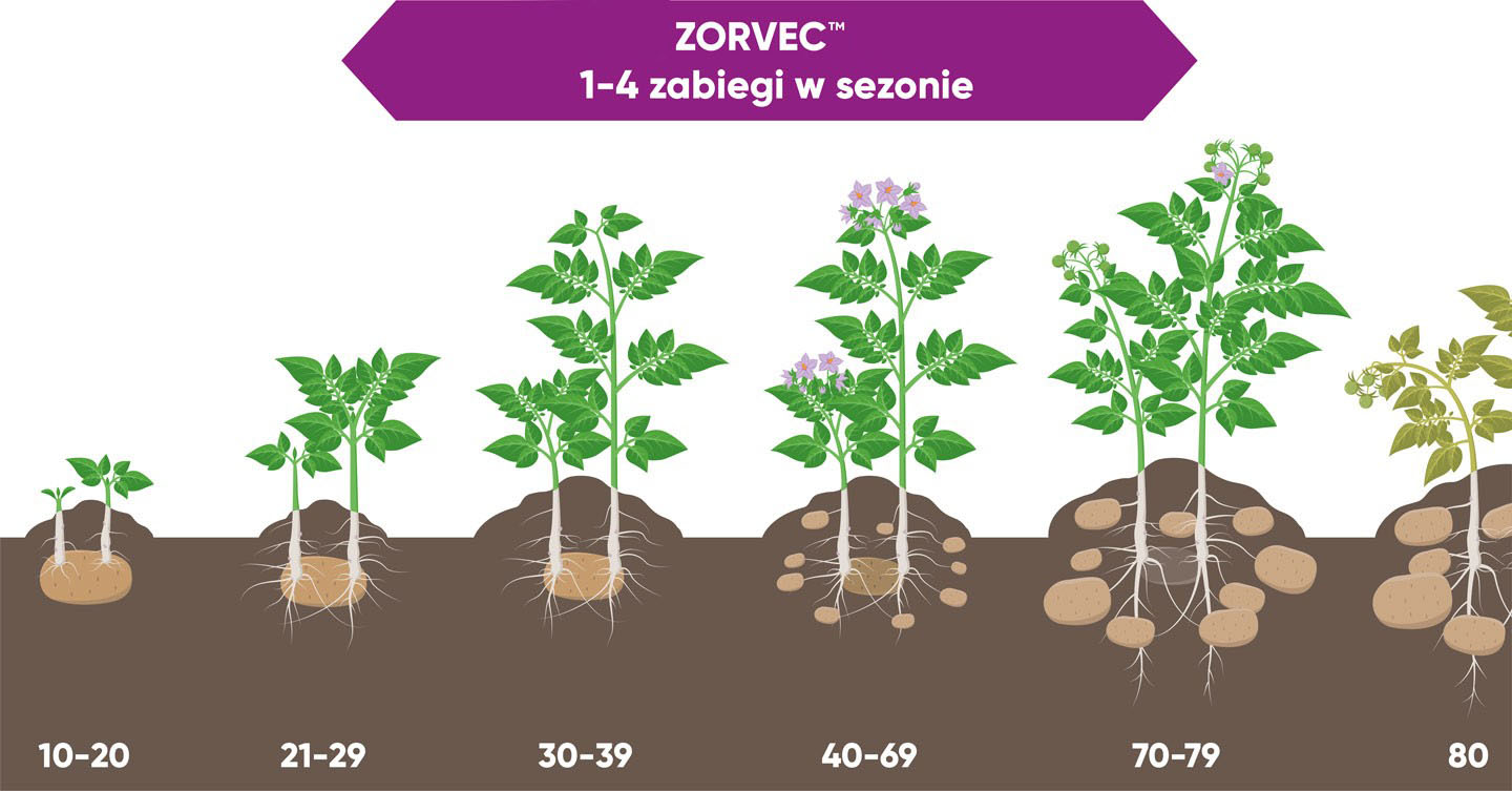 Fungicydy z rodziny Zorvec™ active zastosowane w krytycznym okresie wzrostu i rozwoju ziemniaka to podstawa do kontynuacji programu ochrony uwzględniającego nie tylko dalszą ochronę masy liściowej, ale także ochronę przed zarazą bulw przed zbiorem. Zapobiegają wtórnemu rozprzestrzenianiu się choroby, ograniczając źródło infekcji na danym polu.