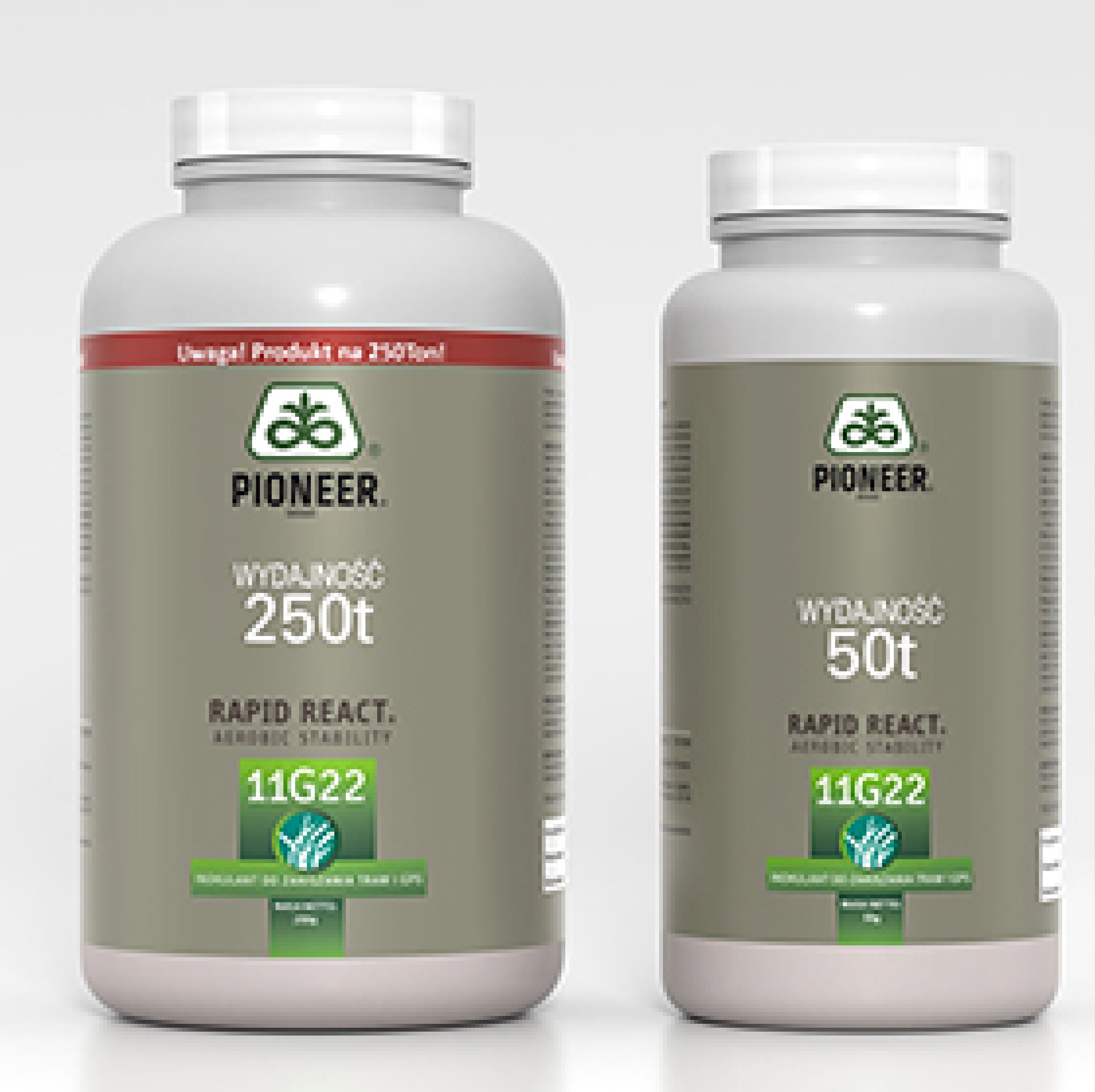 Inokulanty Pioneer 11C33, 11G22 z technologią stabilizacji tlenowej Rapid React™ są przełomowym osiągnięciem firmy Pioneer w zakresie zintegrowanych rozwiązań żywieniowych. Innowacja ta zapewnia pełną stabilizację kiszonki w ciągu zaledwie siedmiu dni. Podobnie jak wszystkie pozostałe inokulanty Pioneer, produkty 11C33, 11G22 pomagają maksymalizować wartość paszy.