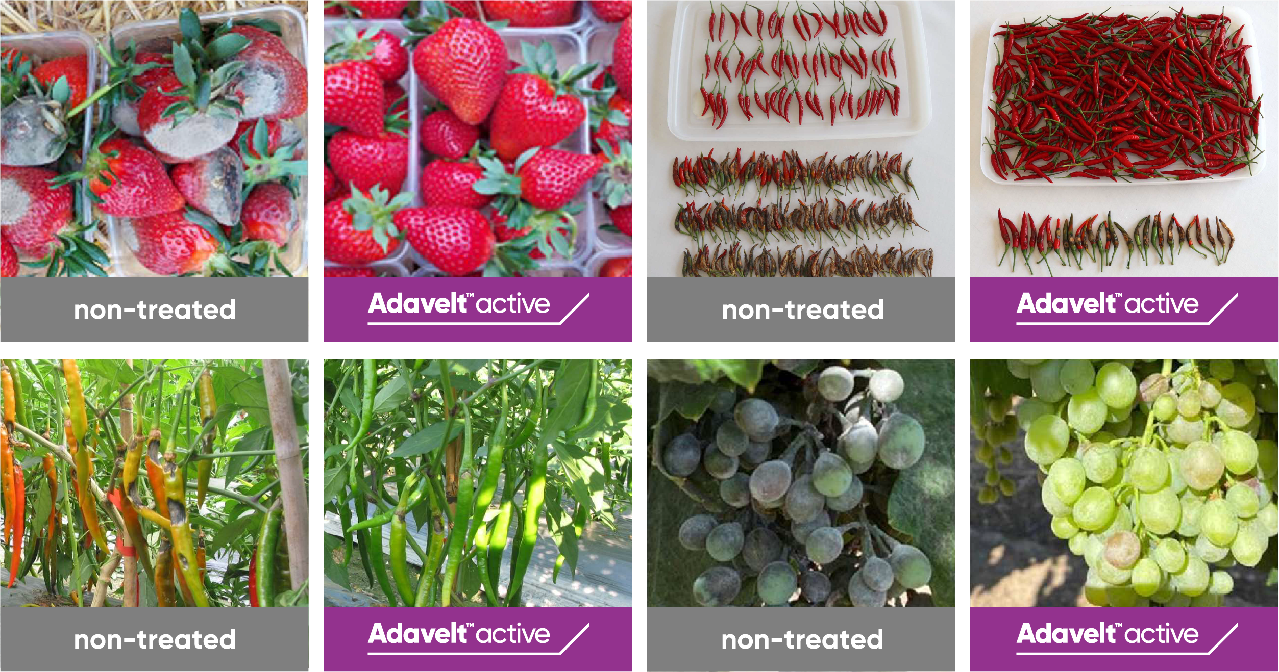 These comparison photos from field trials show how Adavelt protects produce from fungal disease damage.