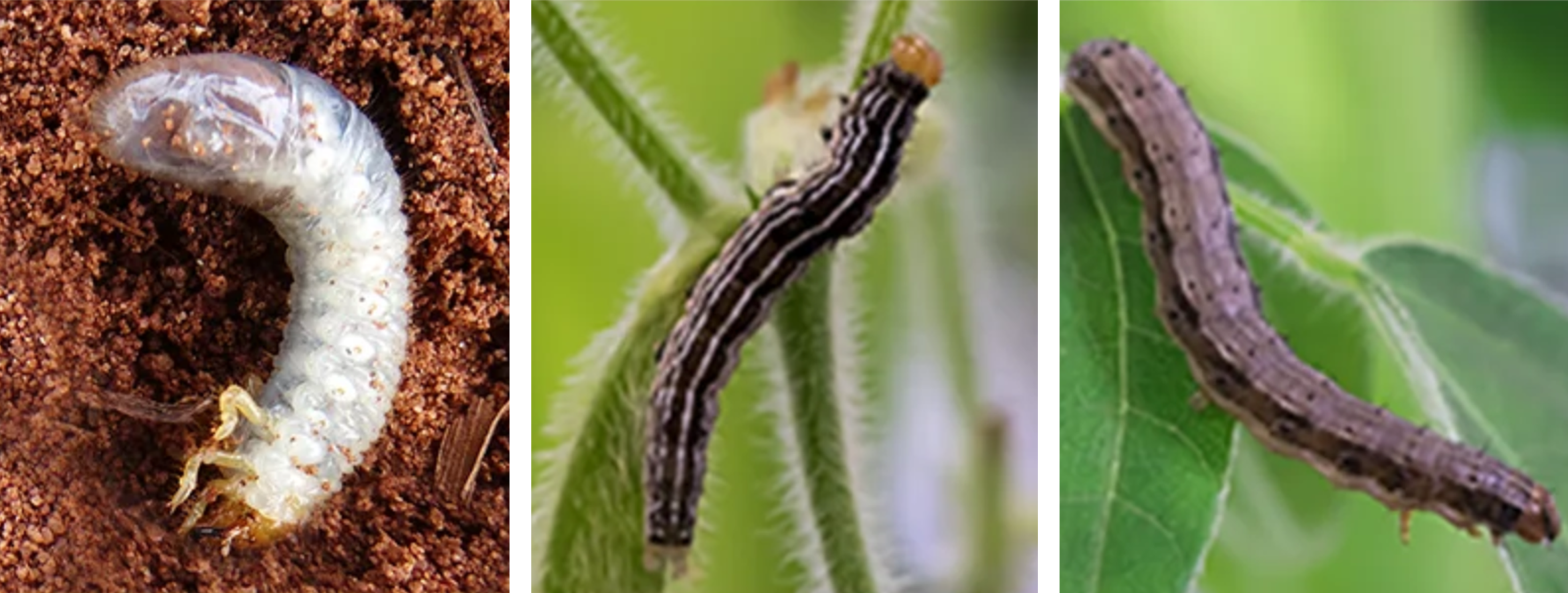 Insect pests: Caterpillars are a major challenge for Brazilian soybean farmers. Dermacor® insecticide seed treatment helps control white grubs, velvetbean caterpillars and fall armyworms, all of which feed on developing soybean plants, reducing stand establishment and potentially transmitting plant diseases.