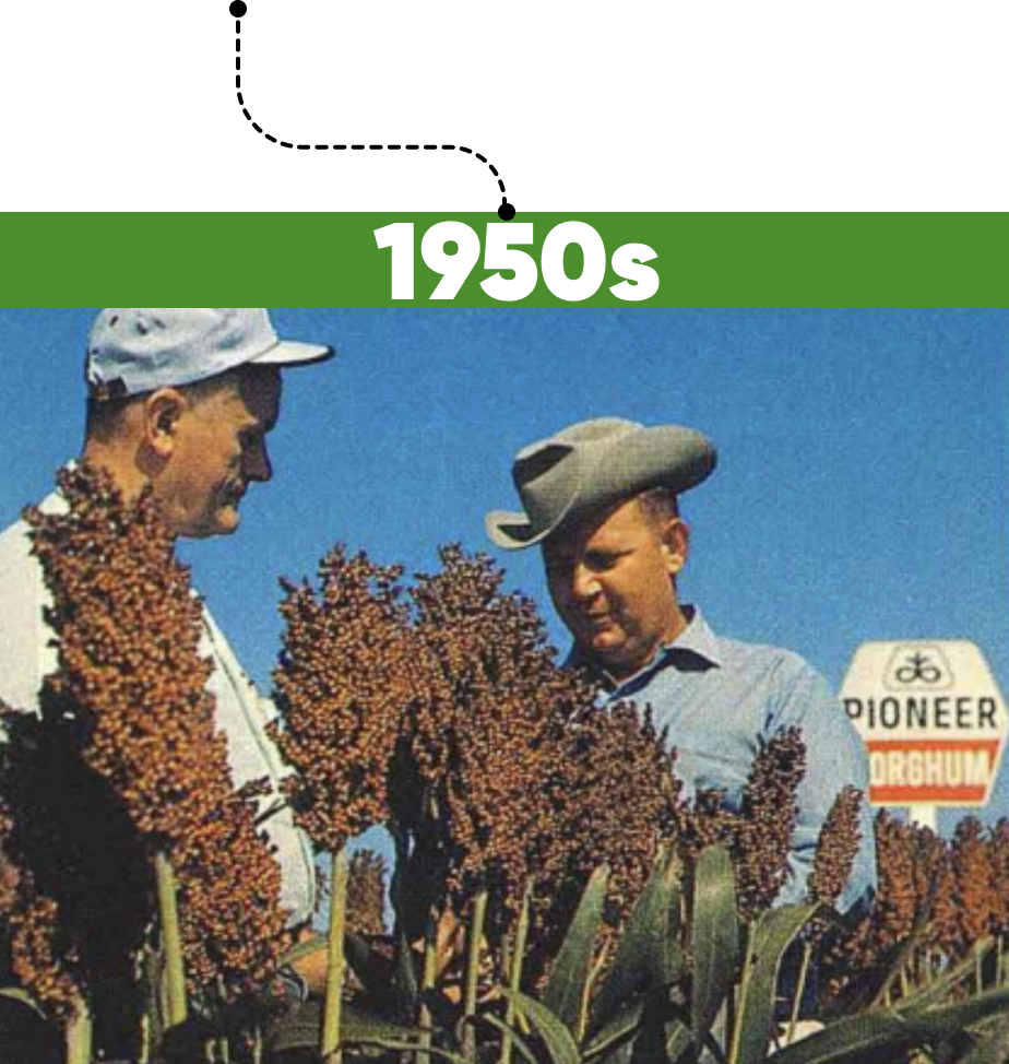Pioneer enters the sorghum market with research and hybrid breeding efforts, laying the foundation for decades of innovation in drought-tolerant grain.