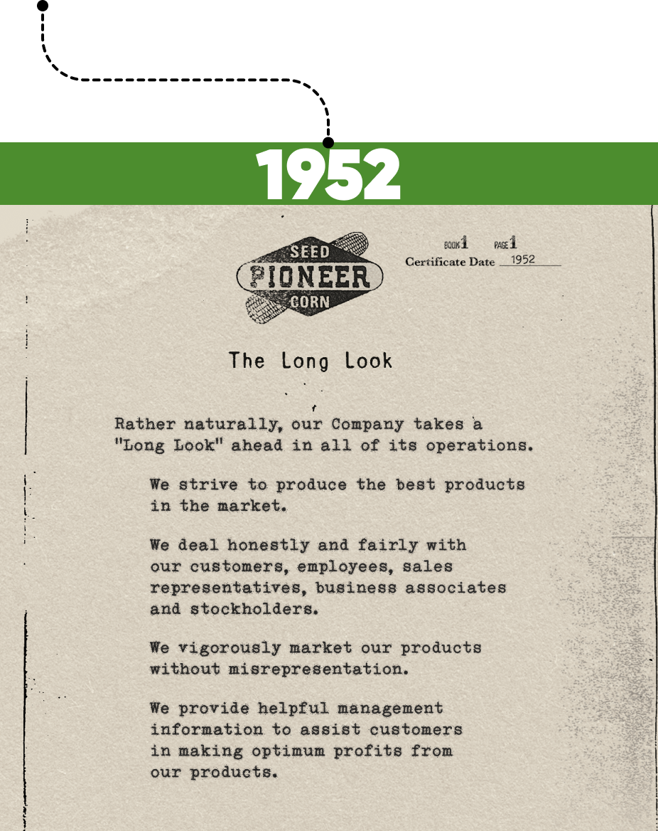 The Pioneer Long Look business philosophy was created to highlight our history and key innovations, focusing on its role in commercializing hybrid corn.