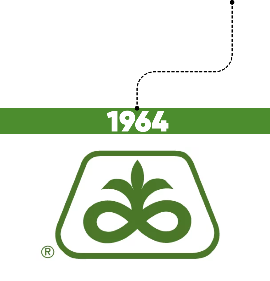 In 1964, the company introduced the iconic Trapezoid symbol — made up of an abstract plant and its surrounding device.