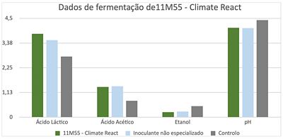 *Perfil de fermentação de silagem de erva tratado com Climate React, em comparação com silagens não tratadas e inoculantes não especializados. (Resumo de 20 ensaios)