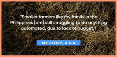 For inclusion, what areas is agriculture lagging in most? Where are you seeing progress? I still see that automation/ digital is not there yet, although I see the effort that the industry is making to get there. Smaller farmers like my family in the Philippines [are] still struggling to do anything automated due to lack of budget.