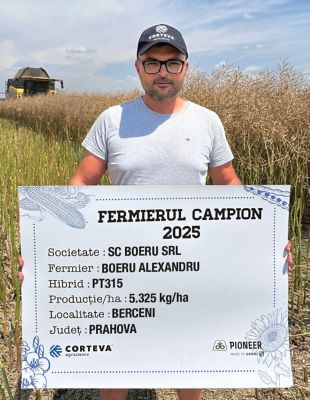 “Am semănat acest hibrid după cultură de grâu, terenul a fost lucrat în sistem Minimum Tillage, iar fertilizarea a fost realizată în urma cartării agrochimice, iar în urma rezultatelor am decis ce și cum aplicăm. În cazul hibridului PT315 am aplicat DAP – 180 kg/ha și am semănat în data de 19 august. Am aplicat în toamnă un fungicid pe bază de tebuconazol și au fost 2-3 intervenții cu insecticide pentru protecția plantelor de afide. În primăvară am fertilizat cu uree -135 kg/ha, precum și cu sulfat de amoniu la început de aprilie – 165 kg/ha. Primul tratament a fost aplicat la alungirea tijei, atunci am dat fungicid și insecticid de contact, precum și foliar cu bor, după care la începutul înfloritului am aplicat insecticidul Inazuma și fungicidul Capartis. Am recoltat în jurul datei de 10 iulie și pot spune că acest hibrid s-a adaptat foarte bine la variațiile de temperatură, chiar și la acel îngheț târziu, la precipitațiile abundente sau la căldura din perioada înfloritului și a reușit să ne ofere o producție foarte mare, nu mă așteptam la acest rezultat. Hibridul are un potențial mai ridicat, au fost zone unde producția a fost mult mai mare, 5.325 kg/ha a fost producția medie la acest hibrid. A fost un an bun pentru rapiță, chiar dacă au fost și parcele mai slabe, pentru că nu am întors nicio cultură unde în toamnă au mai fost probleme, chiar dacă nu am avut densitate, totuși media pe fermă a fost 4.841 kg/ha, vorbesc de tot ceea ce am livrat. Pentru că sunt adeptul rotațiilor mai lungi, voi semăna maxim 170 ha cu rapiță în această toamnă, atât îmi permite terenul pe care îl lucrez”, a punctat fermierul campion. Acesta a mai adăugat faptul că a fost foarte mulțumit de PT315 motiv pentru care 90% din suprafața dedicată rapiței în această toamnă va fi semănată cu acest hibrid.