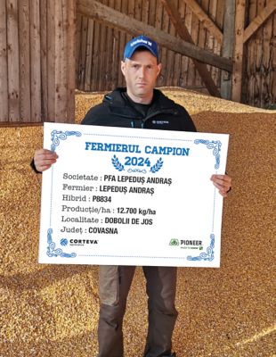 Compania Corteva Agriscience continuă seria prezentărilor fermierilor campioni la porumb din campania 2024, iar de această dată a venit rândul domnului Andraș Lepeduș din județul Covasna, localitatea Dobolii de Jos. Campania trecută a avut monocultură de porumb pe 100 ha, din totalul de 130 ha pe care le lucrează, și a obținut o producție de 12.700 kg/ha cu hibridul P8834. Un rezultat remarcabil pentru zona în care își desfășoară activitatea, ținând cont de condițiile de cultură predominate de secetă din 2024.