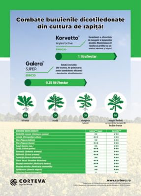 Pentru aplicarea în primăvară, compania Corteva Agriscience vă pune la dispoziție cea mai avansată soluție tehnologică pentru controlul buruienilor dicotiledonate – erbicidul KORVETTO™, erbicidul nr. 1 pentru controlul din primăvară al buruienilor dicotiledonate din cultura de rapiță.