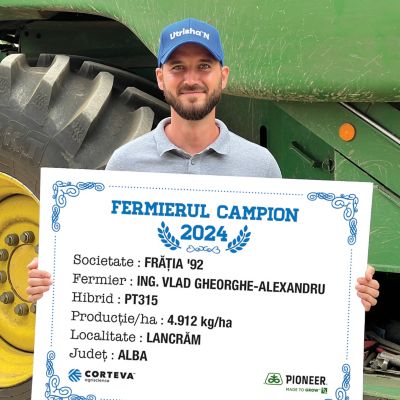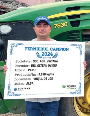 Un alt fermier campion din județul Alba este domnul ing. Ovidiu Oltean, Societatea Agricolă Vințana. Acesta a semănat hibridul PT315 și a obținut o producție de 4.616 kg/ha.