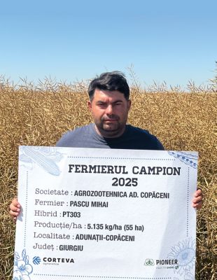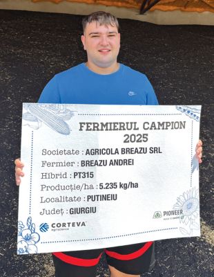 Hibridul PT315 este cel care a adus cea mai ridicată producție în cadrul fermei Agricola Breazu, iar domnul Andrei Breazu, din localitatea Putineiu, a devenit fermier campion recoltând 5.235 kg/ha.