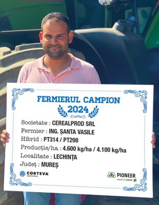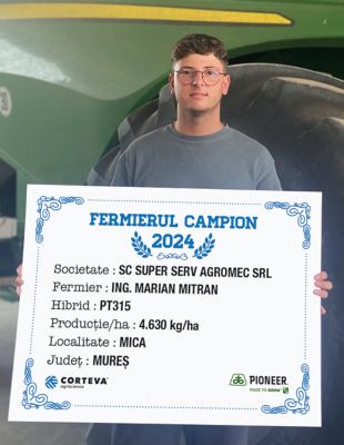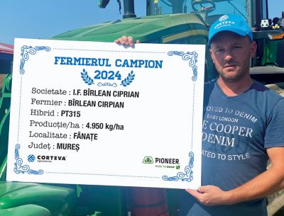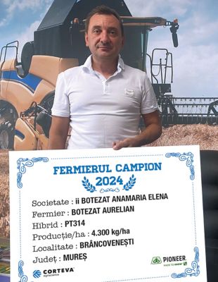 Primul fermier campion din județul Mureș, din localitatea Fânațe, este domnul Ciprian Bîrlean, care a ales hibridul PT315 și a obținut o producție de 4.950 kg/ha.