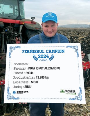 Unul dintre fermierii campioni este și domnul Ionuț Alexandru Popa din județul Sibiu, care a ales hibridul P9944 și a recoltat o producție de 13.980 kg/ha. Din cele 200 ha semănate cu porumb, din totalul de 260 ha pe care le lucrează, 120 ha au fost semănate cu hibridul P9944.