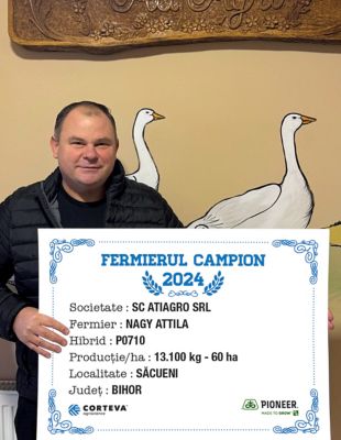 Este și exemplul următorului fermier campion, domnul Nagy Atilla din localitatea Săcuieni, județul Bihor, care seamănă hibrizi Pioneer încă din anul 2002, respectiv din momentul în care a ales să facă agricultură. În acest moment lucrează 2.000 ha, iar campania trecută a semănat 500 ha cu porumb. Cea mai ridicată producție i-a oferit-o hibridul P0710, respectiv 13.100 kg/ha.